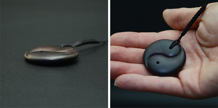 最高級の銘木、本紫檀を用いた、太極図のストラップです。