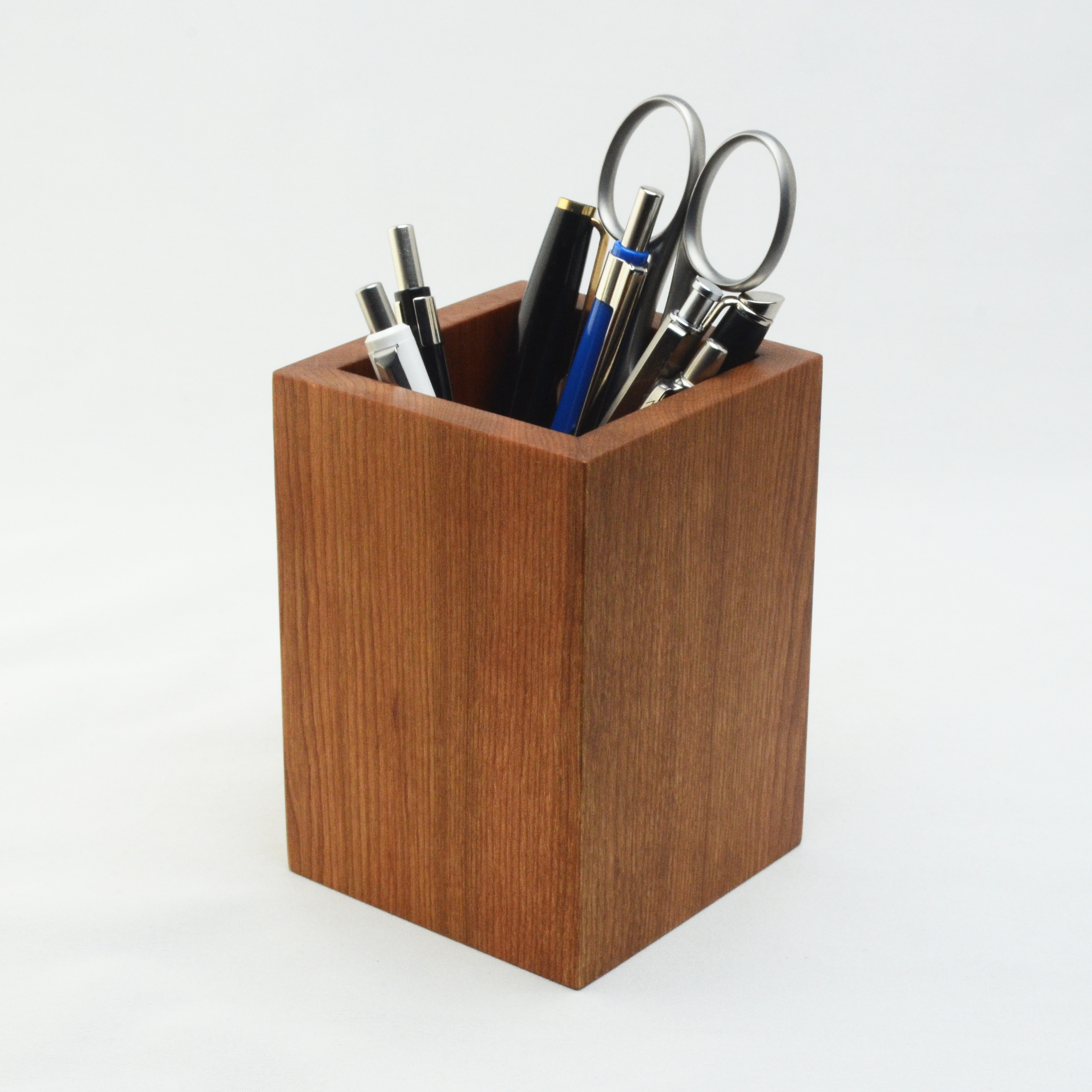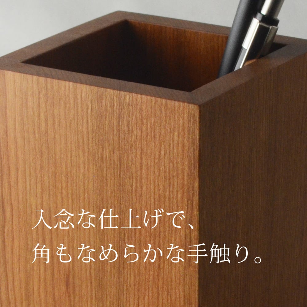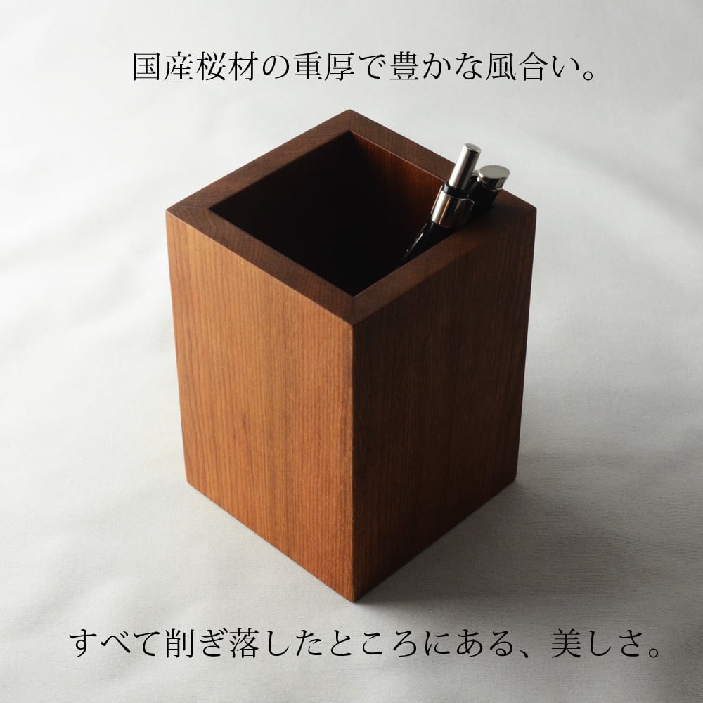 国産桜材のよさを生かすために、美しくシンプルに仕上げたペンスタンドです。