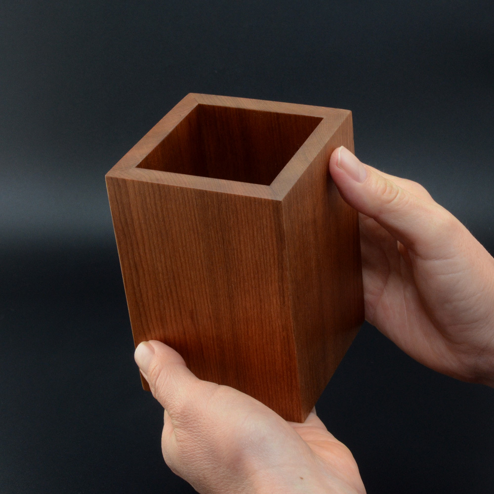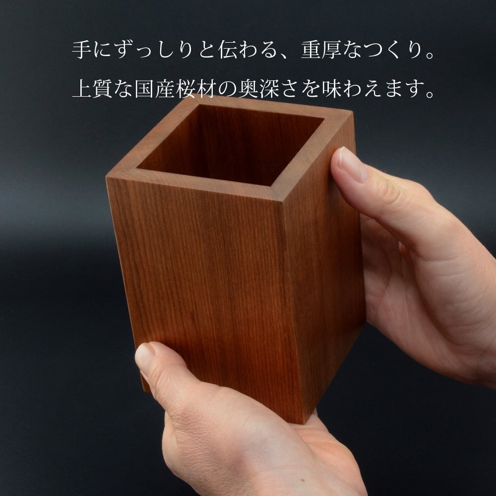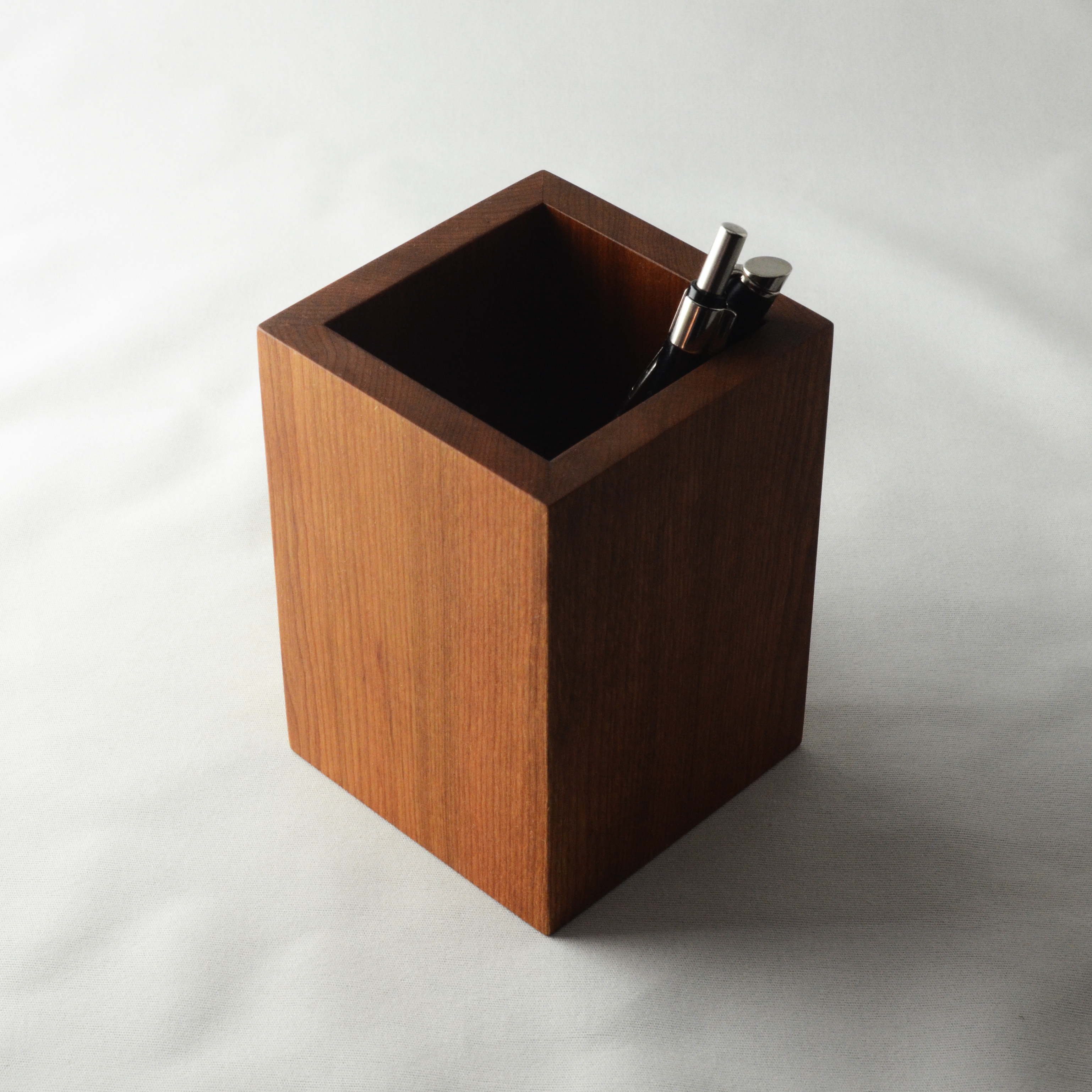 国産桜材のよさを生かすために、美しくシンプルに仕上げたペンスタンドです。