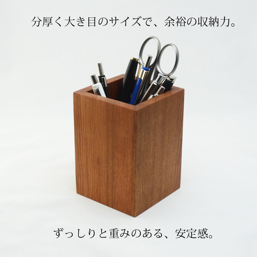 分厚い材のため、ずっしりとした安定感があり、たくさんの筆記具をしまう収納力もあります。